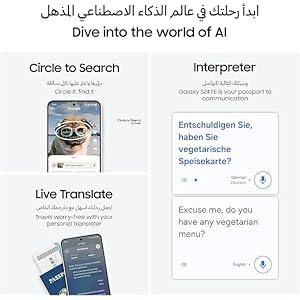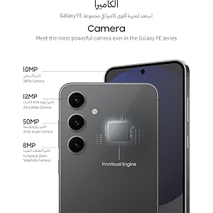 Galaxy Al is here: Meet the Galaxy S24 FE with Galaxy Al, where every photo sparks endless creativity. Immerse yourself in the full Galaxy Al experience and unlock countless ways to explore your imagination. Snap it, circle it, tap it – discover why it’s totally worth it. Photo Assist: Resize it, retouch it with Photo Assist. Use Photo Assist to easily resize, move, and remove unwanted objects in your photos. Transform everyday images into stunning works of art with our Al-powered editing tool. Design & Durability: Colorfully crafted for you. Discover the Galaxy S24 FE in stylish colors, featuring the Galaxy S24 design and slimmer bezel display. The rounded form ensures a comfortable grip, while the clean, flat design enhances your viewing pleasure. With Corning Gorilla Glass Victus+ shielding the front and back and an IP68 rating for dust and water resistance, this phone is built to last. Camera: Meet the most powerful camera on Galaxy FE series yet. The ProVisual Engine is a comprehensive suite of Al-powered tools that enhances photos and videos with sharp details and rich textures, expanding the possibilities beyond just snapping a picture. Night Portrait: Stunning low-light portraits with ProVisual Engine. Bring out vivid moments in dark settings. The Al-powered camera ensures your subject stays bright and clear even in low-light. AP: Hyper-realistic gaming experience. Meet the Galaxy S24 FE, now with the enhanced AP performance for smoother multitasking. Enjoy the cutting-edge Samsung Exynos 2400e for an incredibly immersive and realistic gaming experience. Display: Dive into on immersive viewing experience. Immerse yourself in captivating content with the enhanced Dynamic AMOLED 2X display, now brighter and more colorful than ever. Enjoy a larger screen and slimmer bezels, elevating your viewing experience to the next level. Battery: A battery that works harder so you can play longer. Enjoy extended playtime, powered by a larger 4,700mAh typical battery. Perfectly optimized for video streaming, it’s your ultimate companion for uninterrupted entertainment.
